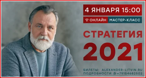4 января 2021 года в 15:00 (время московское) в zoom состоится онлайн-сессия Александра Литвина "Стратегия 2021".
