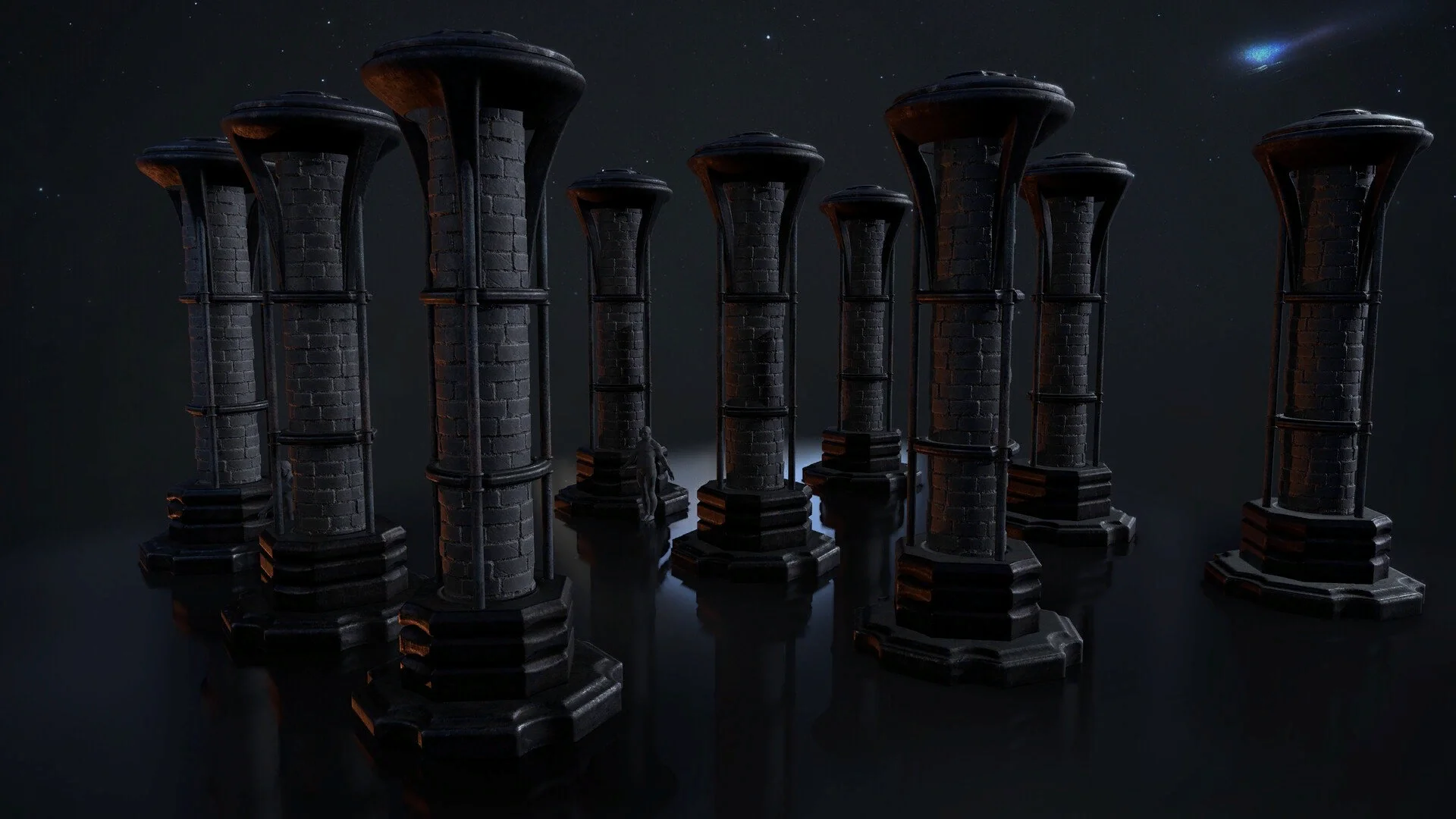 Задание по видеоуроку — сделать колонну. На этой колонне, среди прочего, студенты осваивают, как сделать кирпичную кладку и добавить этим кирпичам фактуры и «подбитостей».