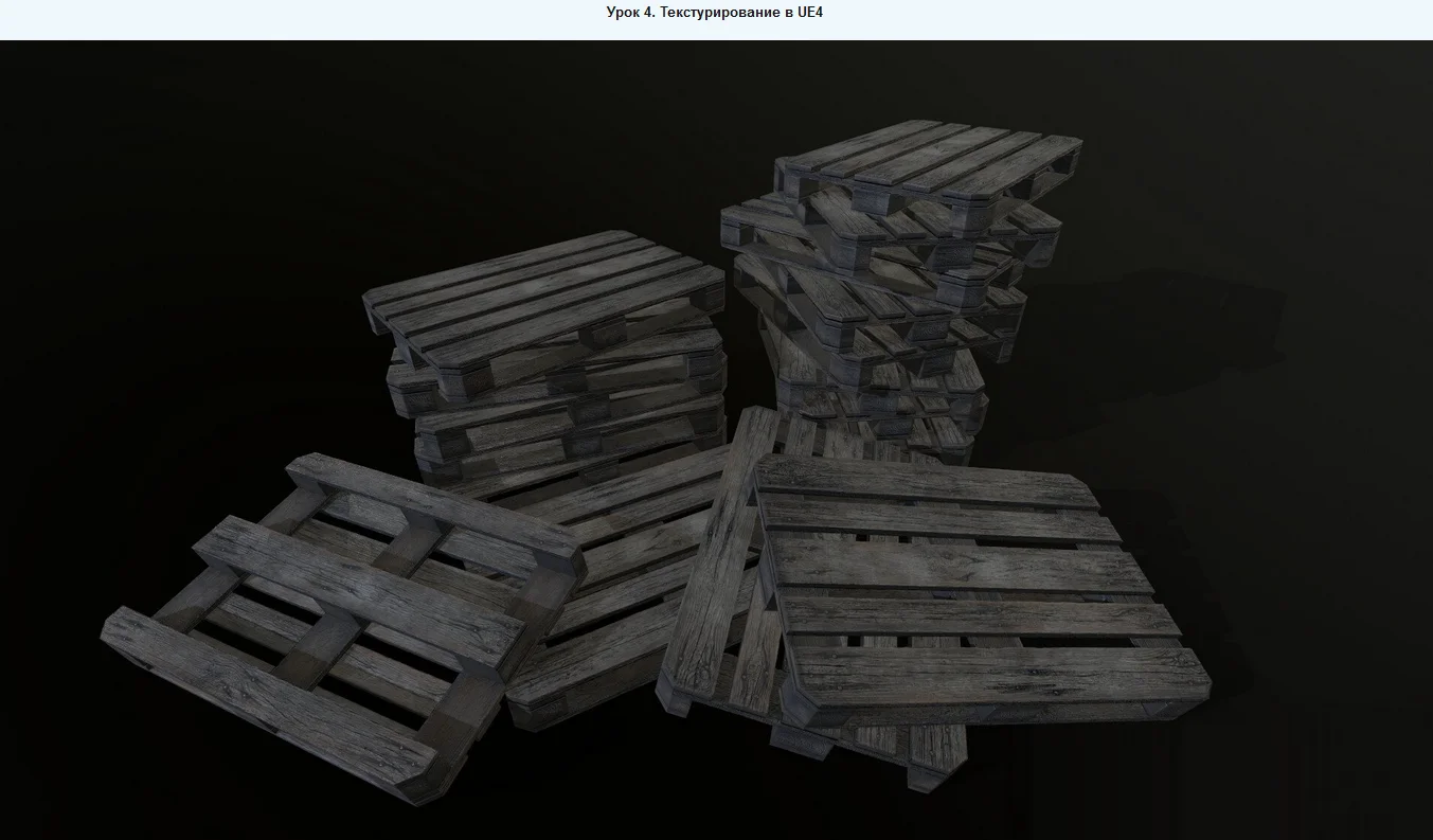 Помимо бочки, студенты получают первую домашку — сделать паллет. Это тоже примитивный объект. Но его каждый делает сам: ищет референс, делает древесину, следует тому же пайплайну. Студенты должны показать, что поняли принцип работы.