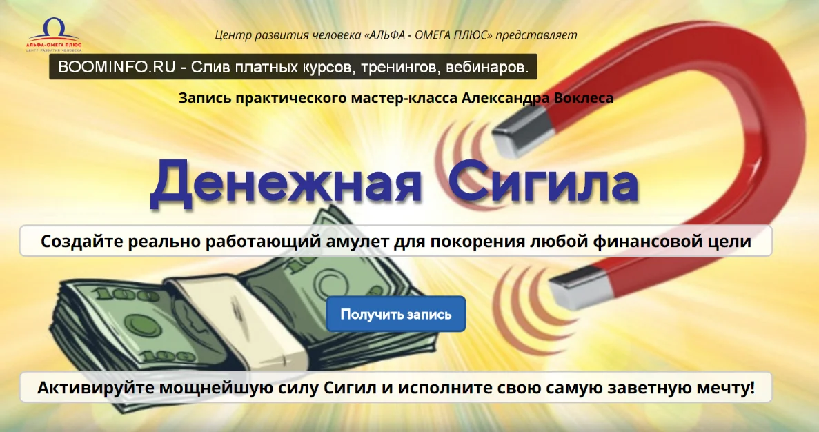 На мастер-классе “Денежная Сигила” вы создадите и активируете амулет, который поможет вам привлечь в вашу жизнь ЛЮБУЮ (КОНКРЕТНУЮ) СУММУ ДЕНЕГ, которая вам сейчас нужна больше всего.