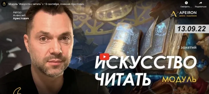 Это курс о том, как читать вообще: разные книги и разные видеоряды разных жанров и авторов, от научных до сказочных.) Мы выясним, что знания — это информация, собранная нами на основе определённой цельности, за цельностью стоят концепции, за концепциями — принципы, а за принципами — идеи, которые их собирают воедино, и, наконец, главная идея произведения — вместе с определенным взглядом на вещи, который она формирует. Все это мы учимся определять в ходе занятий.