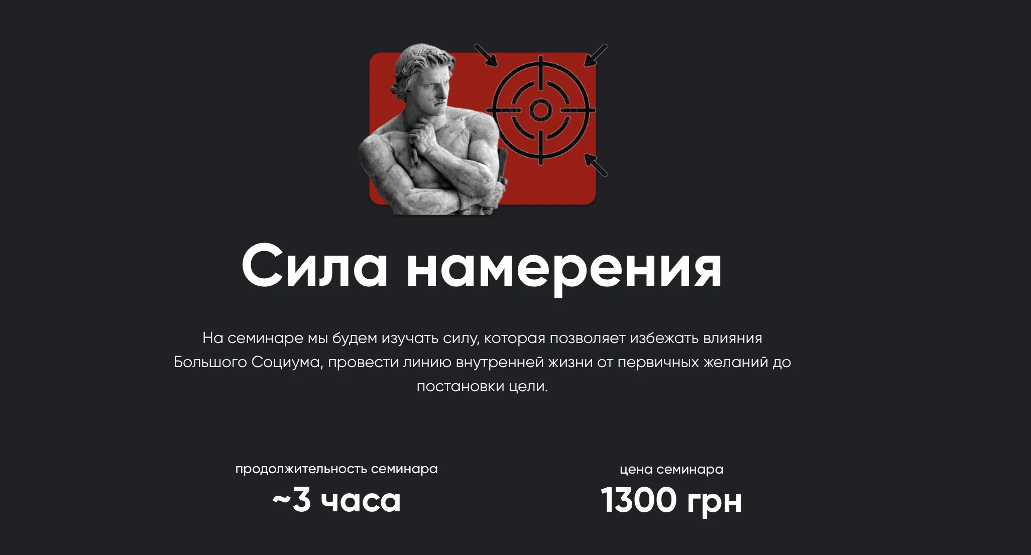 На семинаре мы будем изучать силу, которая позволяет избежать влияния Большого Социума, провести линию внутренней жизни от первичных желаний до постановки цели.