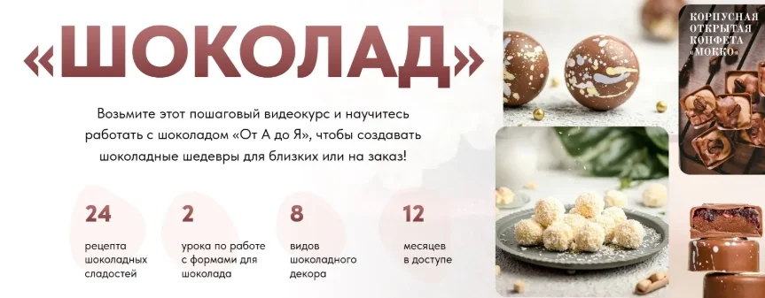 6 модулей и 34 видеоурока, чтобы вы научились работать с шоколадом