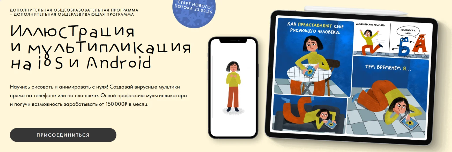 Иллюстрация и мультипликация на iOS и Android. Тариф С куратором (2026)