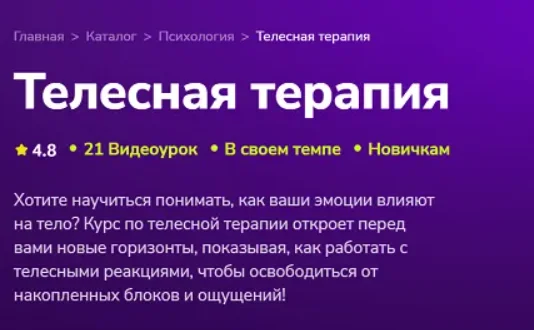 Хотите научиться понимать, как ваши эмоции влияют на тело? Курс по телесной терапии откроет перед вами новые горизонты, показывая, как работать с телесными реакциями, чтобы освободиться от накопленных блоков и ощущений!