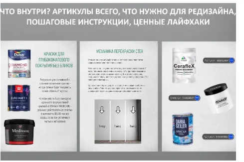 И за эти годы перепробовала красить всё, что только можно, все техники, виды красок, тонкости красивой ровной перекраски без полос и подтеков. Все свои знания я собрала в этот 65 страничный гайд - здесь вы найдете пошаговые инструкции с картинками, артикулы красок по типу назначения, валиков, мебельных ручек и ножек, трафаретов для плитки, рецепт стойкой меловой краски, про колеровку, узнаете как перекрасить: