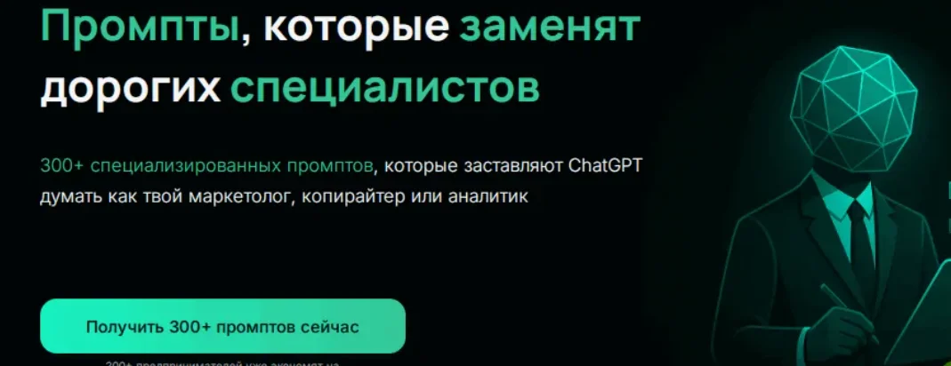 - 300+ специализированных промптов, которые заставляют ChatGPT думать как твой маркетолог, копирайтер или аналитик