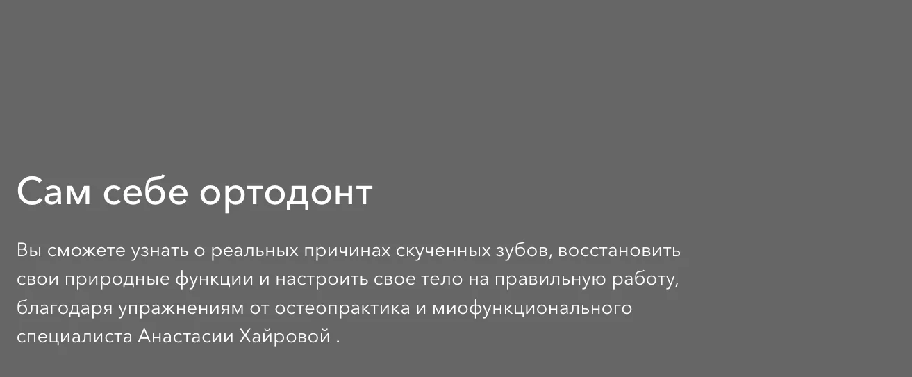 Вы сможете узнать о реальных причинах скученных зубов, восстановить свои природные функции и настроить свое тело на правильную работу, благодаря упражнениям от остеопрактика и миофункционального специалиста