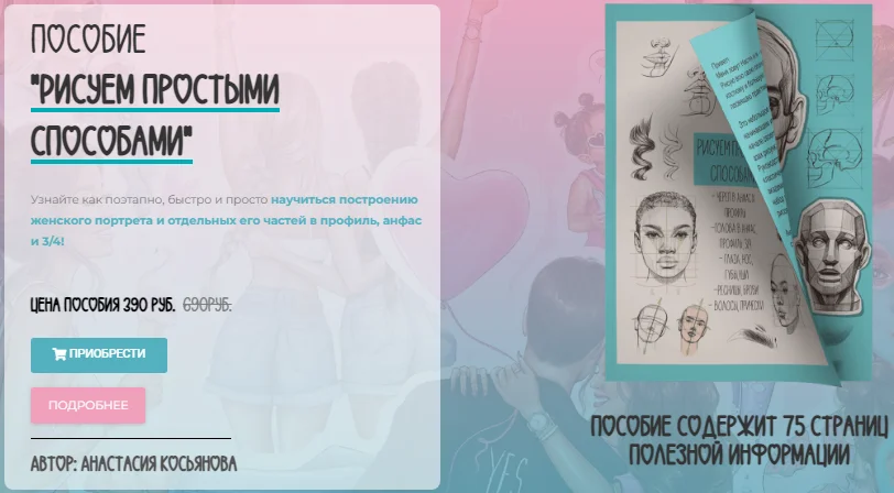 Руководство «Рисуем простыми способами» не является классической книгой по изучению анатомии или книгой по академическому рисунку. Это пособие представляет собой набор простых правил, полезной информации и схем для рисования.