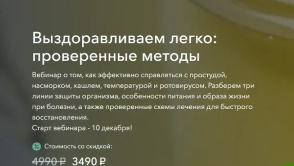Вебинар о том, как эффективно справляться с простудой, насморком, кашлем, температурой и ротовирусом. Разберем три линии защиты организма, особенности питания и образа жизни при болезни, а также проверенные схемы лечения для быстрого восстановления.