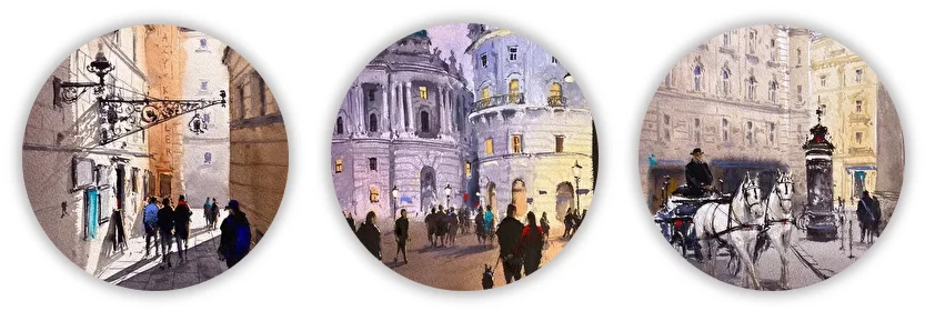 Урок 2. Площадь Хофбург: Играем с цветом и силуэтно прописываем ажурность архитектуры