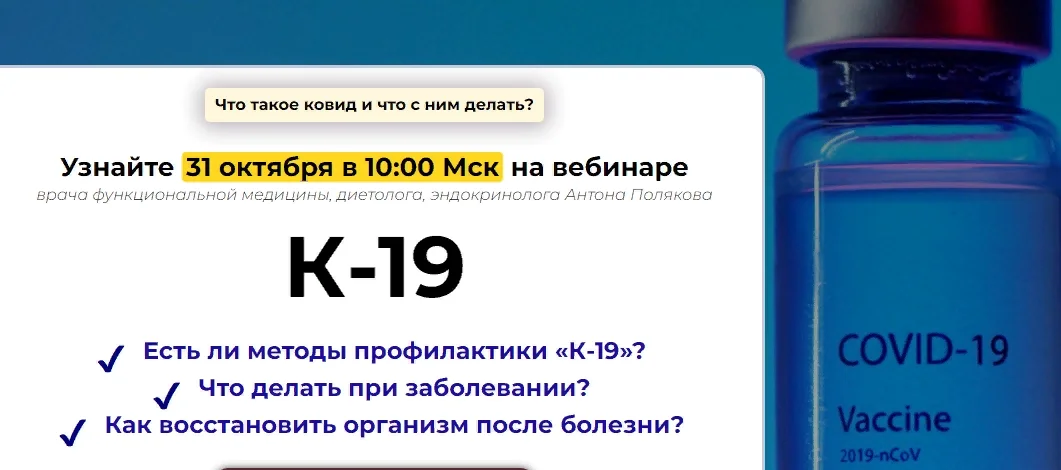 Если же вы верите официальной пропаганде, что умирают только не привитые «антиваксеры», а также полностью одобряете «добровольно-принудительное причинение добра» гражданам, опыты на пожилых людях, детях и подростках, «рабомасочный режим», электронные клеймо и прочие методы сегрегации и унижения человеческого достоинства — этот вебинар ТОЧНО НЕ ДЛЯ ВАС!
