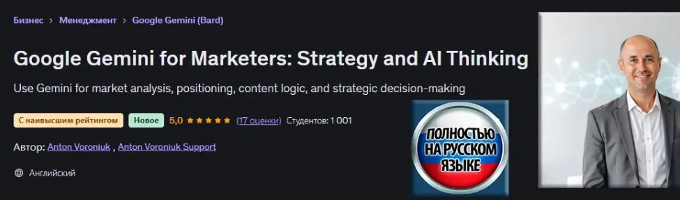 Скачать [Udemy, Антон Воронюк] Google Gemini для маркетологов: стратегия и мышление в сфере ИИ (2026)