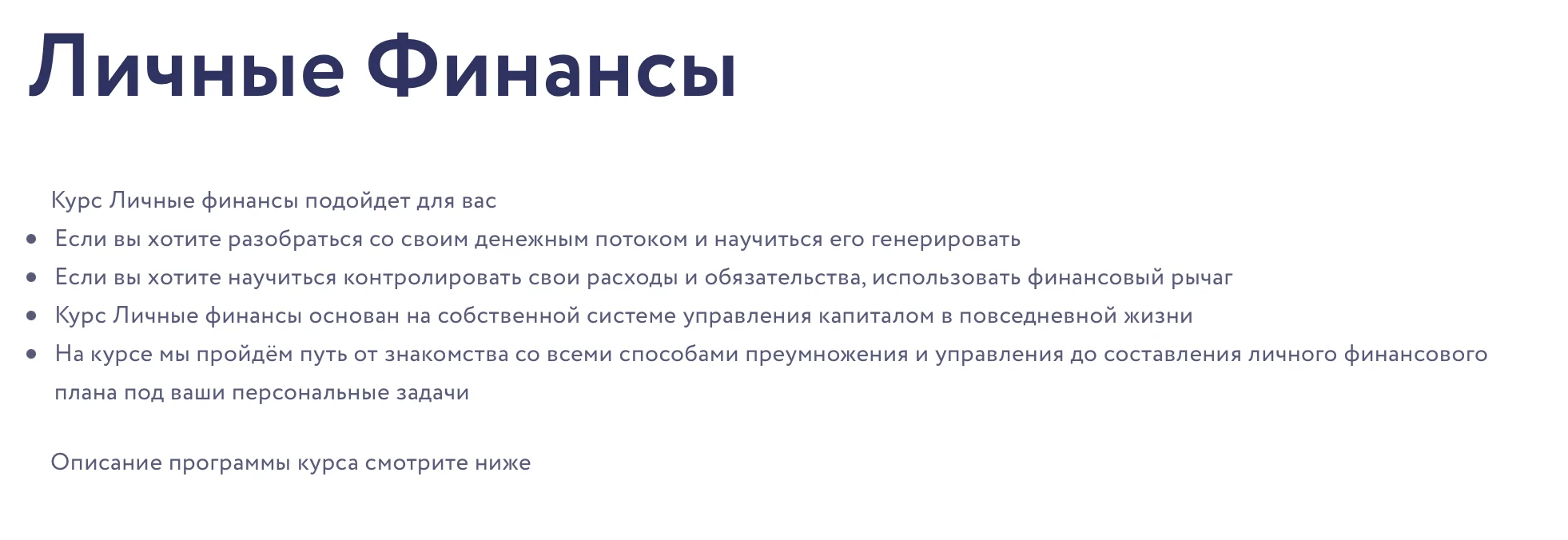 - Курс Личные финансы основан на собственной системе управления капиталом в повседневной жизни