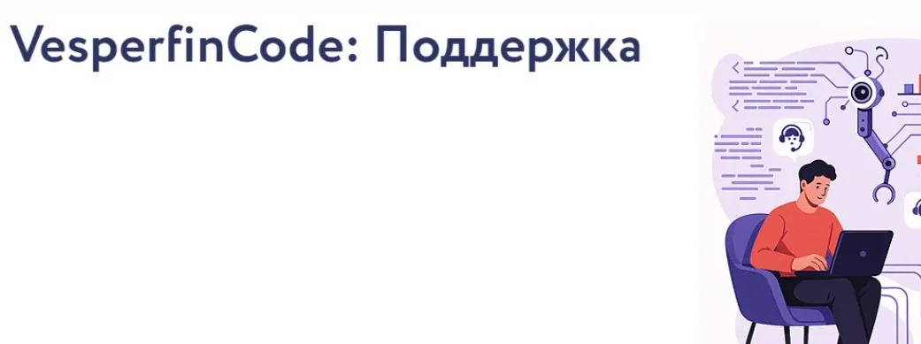 VesperfinCode: Поддержка — дополнительный формат для выпускников и тех, кто уже в теме Python/алготрейдинга и хочет идти глубже: Автоадаптация стратегии, Ловля разворота, ML для алготрейдинга, Портфель ботов, Анализ стакана и ленты, Опционы: боты и стратегии, Order Book Imbalance, Модуль хеджирования, Крипторынки, DeFi, Проп-фирмы, квантовые портфели, Генерация паттернов и многое другое.