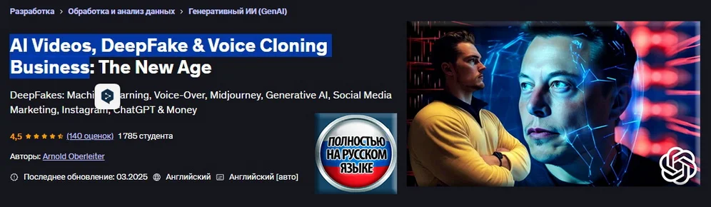 Скачать [Арнольд Оберлейтер] [Udemy] Видеоролики с ИИ, DeepFake и бизнес по клонированию голоса: новая эра (2025)