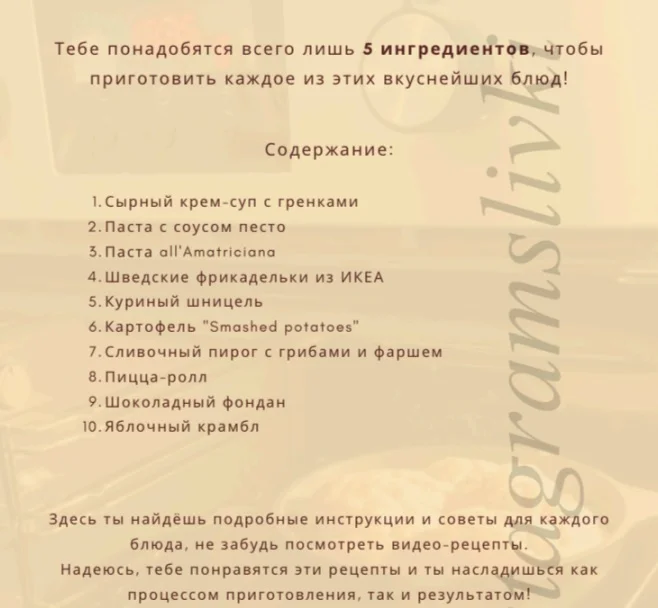 Тебе понадобиться всего 5-ть ингредиентов, чтобы приготовить каждое из этих вкуснейших блюд.