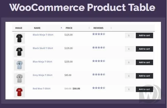 WooCommerce Product Table - это плагин WordPress таблицы продуктов WooCommerce. Перечислите продукты в доступной для поиска, фильтруемой таблице. Идеально подходит для просмотра списка товаров, быстрых форм заказа, оптовых продаж, ресторанов и многого другого.
