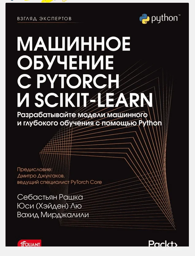 Перед вами не только исчерпывающее руководство по машинному и глубокому обучению с использованием Python, фреймворка PyTorch и библиотеки scikit-learn. но и справочник, к которому вы будете постоянно возвращаться при создании систем машинного обучения. Книга подробно описывает все основные методы машинного обучения и содержит четкие пояснения, визуализации и примеры. Автор стремится научить читателя принципам самостоятельного создания моделей и приложений, а не просто следовать жестким инструкциям.