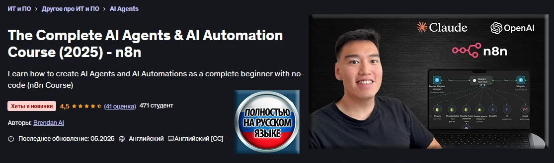 Скачать [Брендан AI] Полный курс по агентам ИИ и автоматизации ИИ (2025) - n8n