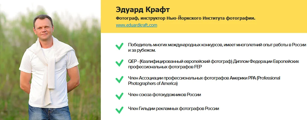 Каждый урок программы – это специальные «фишки» и приемы, которые применяют профессиональные фотографы. Эти знания позволят вам создать великолепные фотографии.