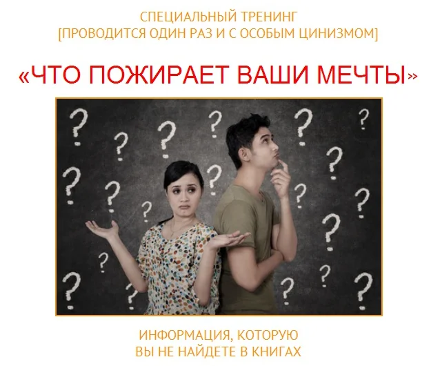 Обо всем этом мы и поговорим на тренинге "Что пожирает ваши мечты?".