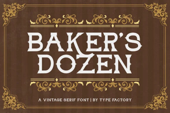 Baker's Dozen - красивый шрифт с засечками. Он сочетает в себе чувство классики, миловидности, элегантности и винтажности, что делает его достаточно выразительным, чтобы придать любому проекту жизнь и энергию, в которых он нуждается. Если вы ищете винтажный и уникальный шрифт, который привнесет в ваш проект много радости, то Baker's Dozen - идеальный шрифт для вас!