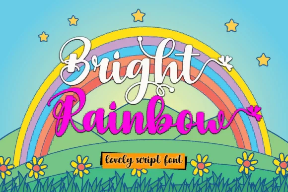 Bright Rainbow - это элегантный, скорописный и веселый рукописный шрифт.