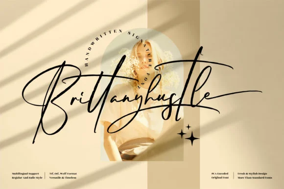 Brittanyhustle - это модный и нежный рукописный шрифт.