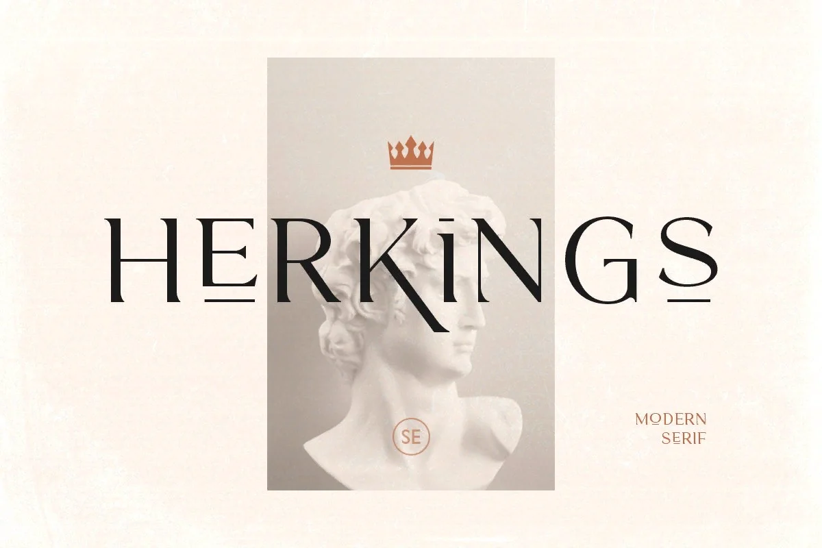 Herkings - это минималистичный и современный шрифт с наклонной засечкой, универсальный и уникальный.