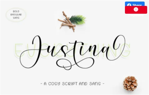 Justina — это красивый дуэт шрифта (без засечек и шрифта), специально созданный для тех, кому в дизайне нужна нотка элегантности и современности. Этот красивый шрифт идеально подходит для логотипов, упаковки продуктов, свадебных приглашений, брендинга, заголовков, вывесок, этикеток, подписей, обложек книг, плакатов, цитат и многого другого.