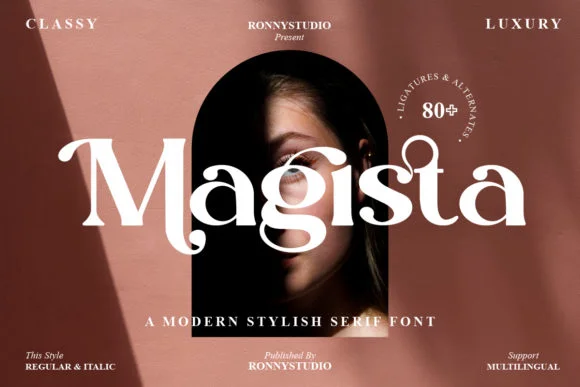 Magista - это элегантный и шикарный шрифт с засечками.
