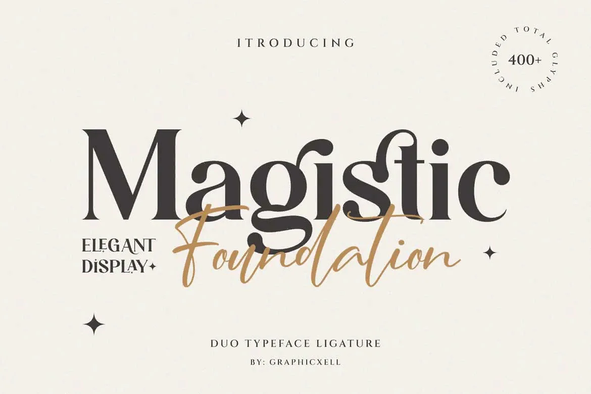 Magistic Foundation - это крутой, смелый и универсальный шрифт в дуэте (шрифт и засечка).