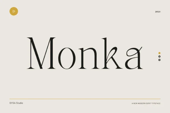 Monka - это современный и чрезвычайно уникальный шрифт с засечками, отлично подходящий для бизнеса или брендинга.