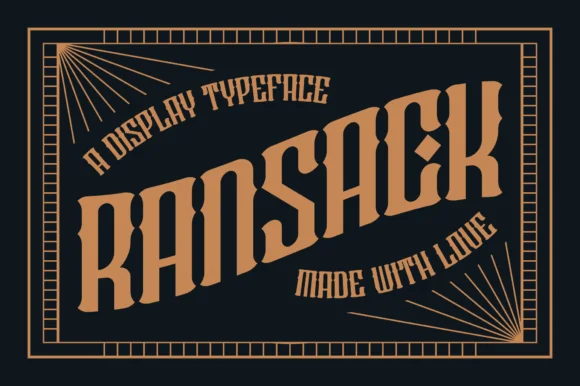 Ransack - выразительный и сложный шрифт с черными буквами. Этот шрифт отличается аккуратностью и высокой детализацией. Независимо от темы, он станет прекрасным дополнением к вашей библиотеке шрифтов, поскольку способен украсить любое творение.