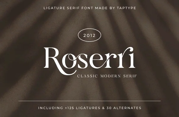 Roserri - стильный современный шрифт с богатой вязью Serif. Минималистский характер, позволяющий легко редактировать дизайн. Он идеально подходит для брендинга, свадебных приглашений и открыток, а также, возможно, для какого-то проекта.