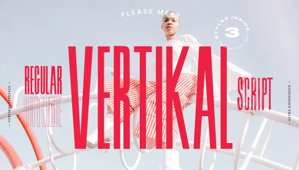 Представляем: Vertikal -Высокий конденсированный шрифт с засечками, представленный в 3 стилях.