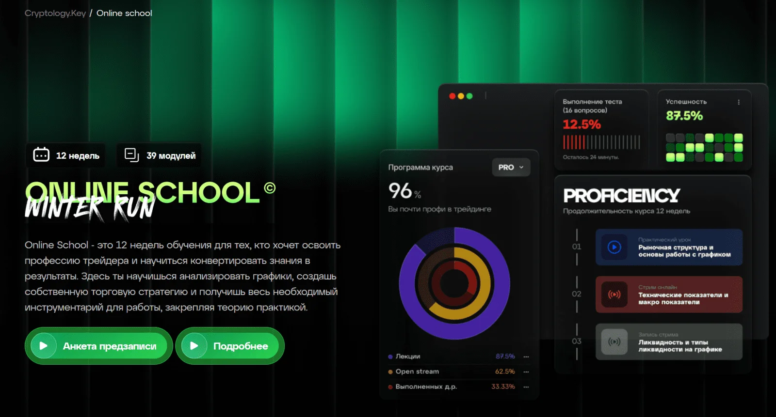 Поэтапный путь погружения в мир трейдинга и криптовалют, в котором вы получите возможность обрести самые актуальные знания и рабочие инструменты для развития ваших торговых навыков. Мы знаем, как довести вас до результата и что необходимо для того, чтобы сделать вашу торговлю прибыльной.