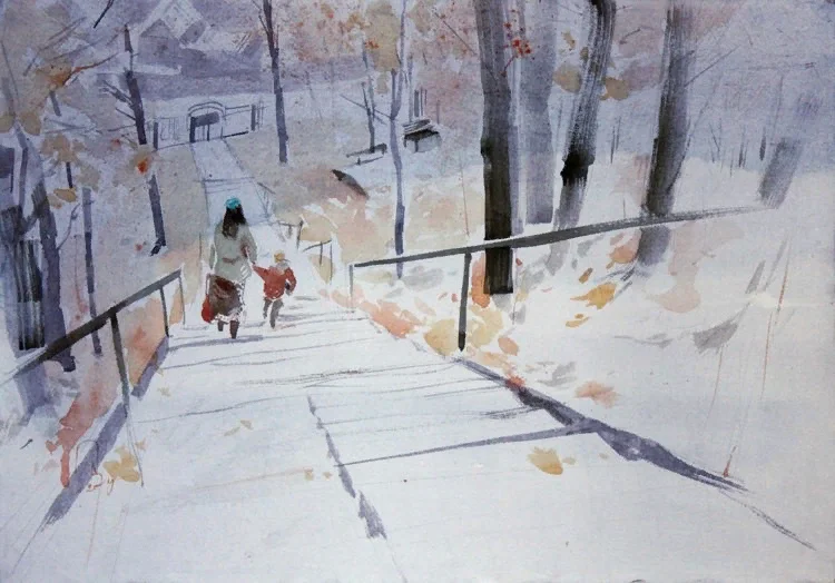 - напишите атмосферный пейзаж ограниченной палитрой цветов.