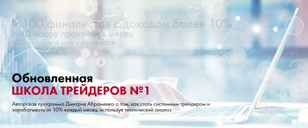 Полугодовая авторская программа Дмитрия Абраменко о том, как стать системным трейдером и зарабатывать от 10% каждый месяц, используя технический анализ.