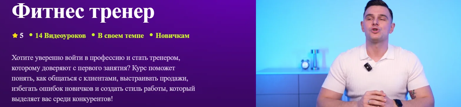 - Поймёте, какие навыки и качества действительно формируют успешного фитнес-тренера и помогают войти в профессию