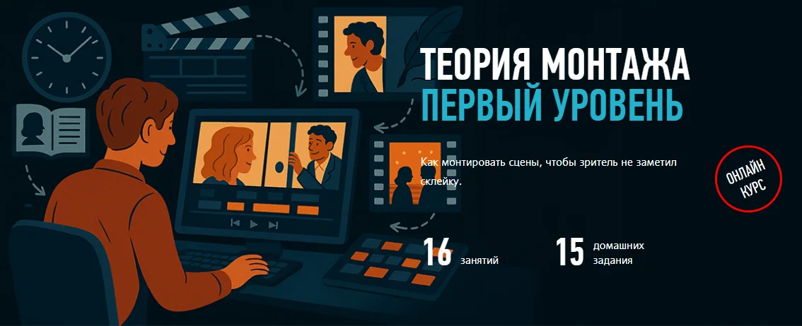 Курс «Теория монтажа» — фундаментальный онлайн-курс для будущих монтажёров и тех, кто хочет серьёзно освоить профессию.