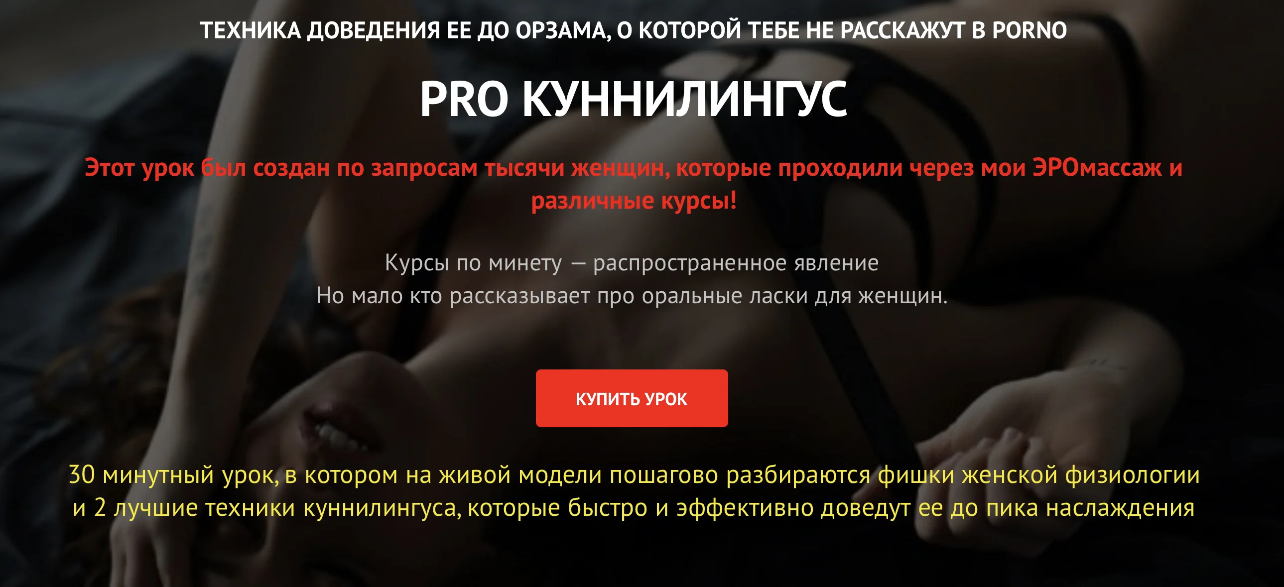 Вы получите: запись видео урока. 30 минутный урок, в котором на живой модели пошагово разбираются фишки женской физиологии и 2 лучшие техники куннилингуса, которые быстро и эффективно доведут ее до пика наслаждения
