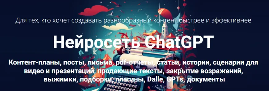 Контент-планы, посты, письма, pdf-отчеты, статьи, истории, сценарии для видео и презентаций, продающие тексты, закрытие возражений, выжимки, подборки, плагины, Dalle, GPTs, документы