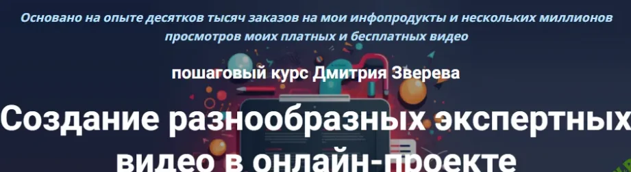 Скачать [Дмитрий Зверев] Создание разнообразных экспертных видео в онлайн-проекте (2024)