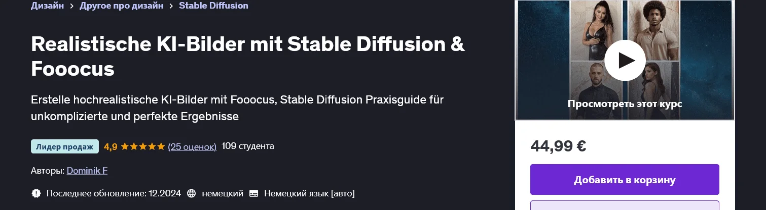 Скачать [Доминик Ф] [Udemy] Реалистичные изображения AI со Stable Diffusion и Fooocus (2024)