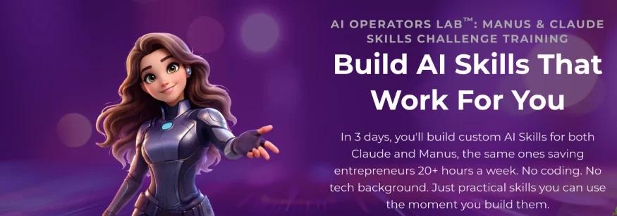 Практический челлендж-тренинг, посвященный созданию и использованию AI-навыков (AI Skills) для автоматизации бизнес-задач с помощью таких инструментов, как MANUS и Claude.