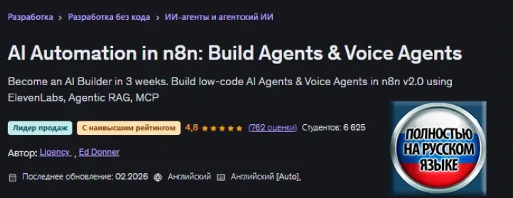 Скачать [Udemy, Эд Доннер] Автоматизация с помощью ИИ в n8n: создание ИИ-агентов и голосовых агентов (2026)