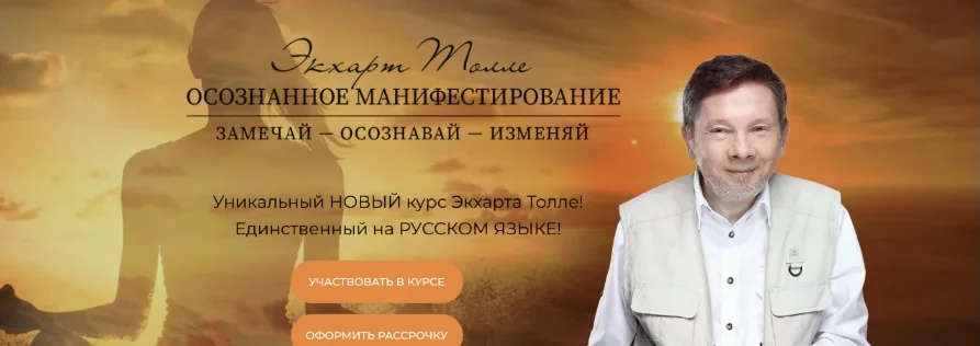 Эта онлайн-программа представляет собой пошаговое руководство Экхарта Толле, в котором за 8 недель вы попадете в свое внутренне я, овладеете техниками осознанного манифестирования.