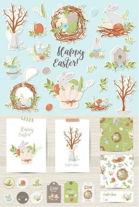 Название: Happy Easter funny rabbit stickers and holiday elements (2021)